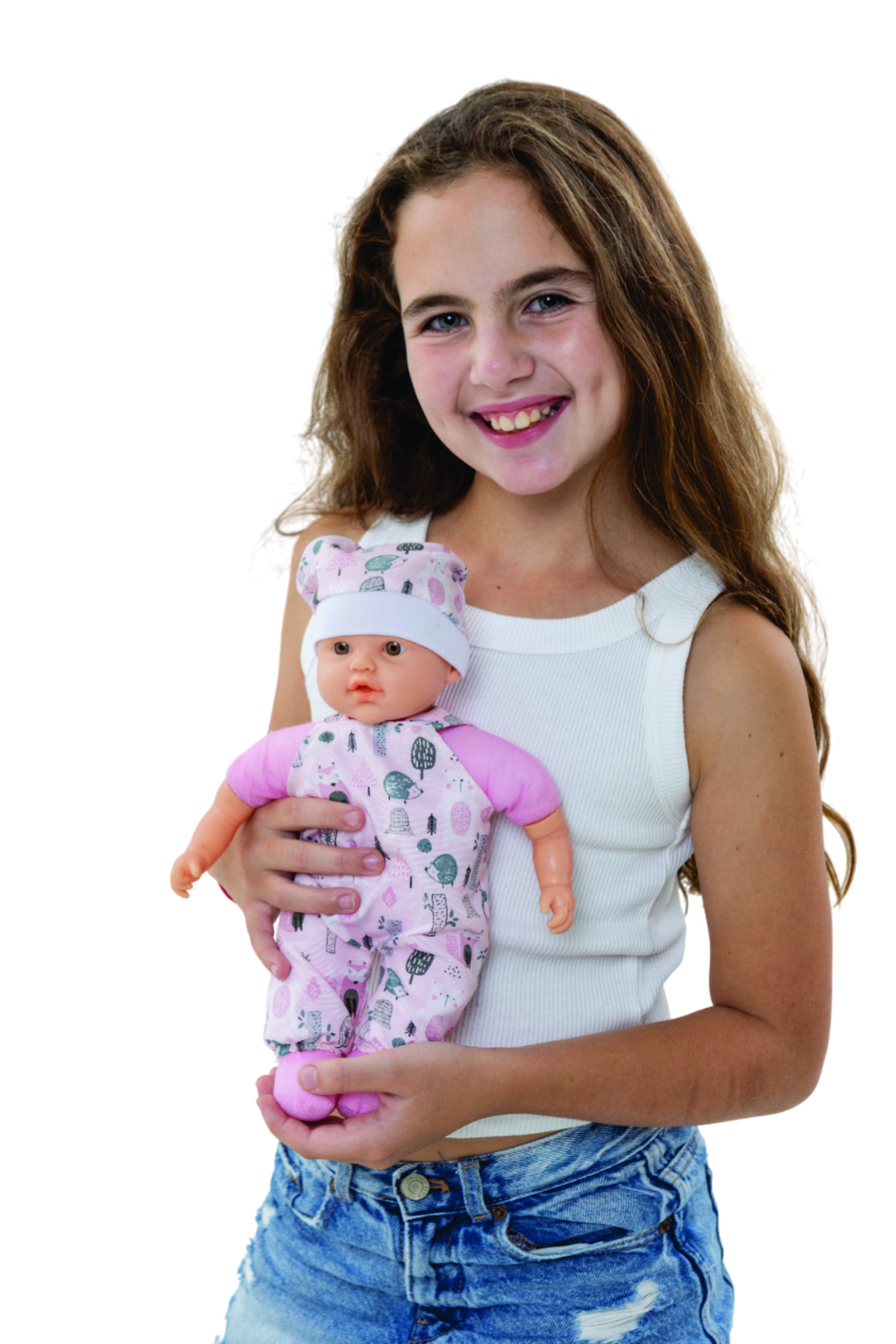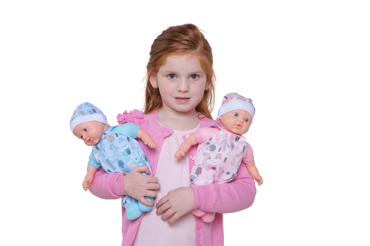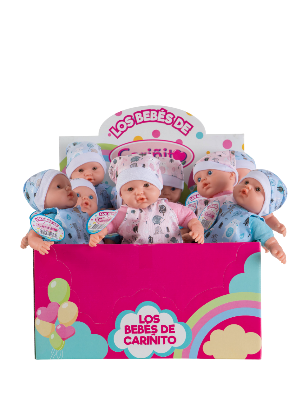 BEBE SOFT GRANDE, bebé blandito, mide 31 cm, cuerpo en tela relleno y suave, con enterito y gorro. Manitos y cabeza en plastisol, en caja exhibidora x 12 unidades.