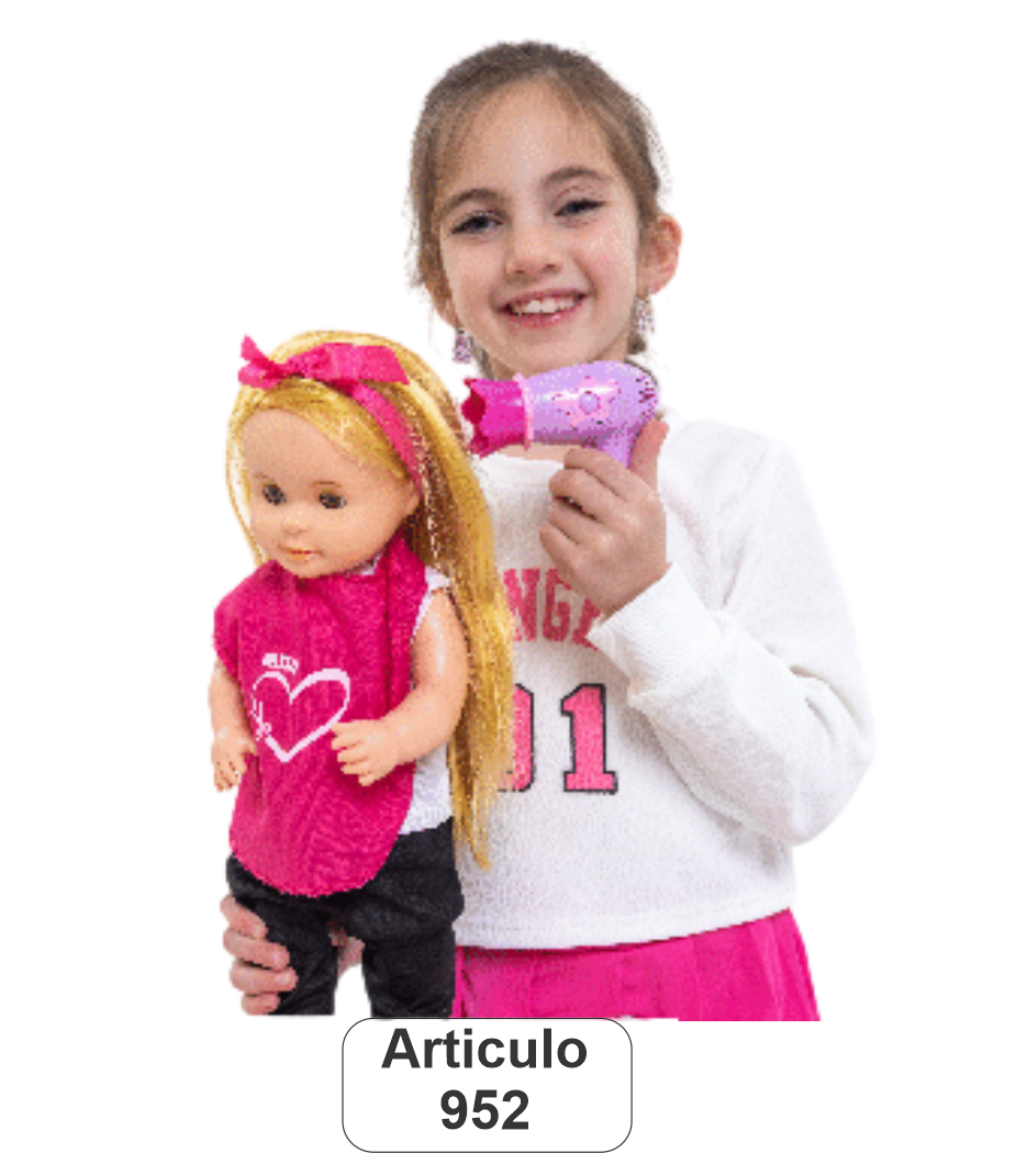 MILA PELUQUERA, Muñeca de 40 cm de altura, cuerpo, piernas y zapatitos en plástico regido, brazos y cabeza en plastisol con accesorios peluquera, pintura para el pelo.