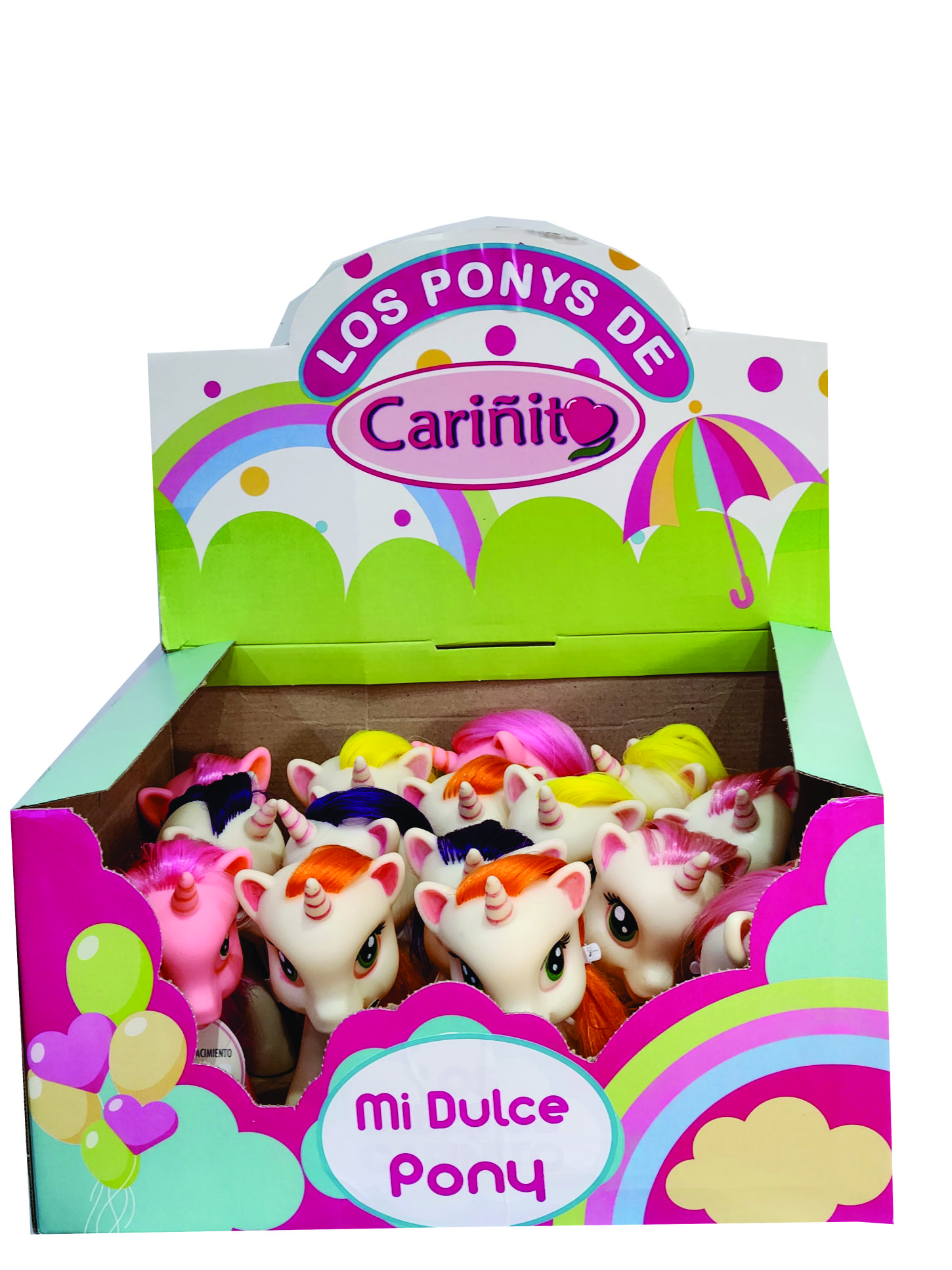 PONY CHICO. Muñeco pony (unicornio) pequeño (15 cm) con pelo implantado en cabeza y cola en caja exhibidora.