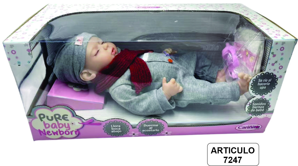 QM24013 BEBE RECIEN NACIDO, Bebé realista, piel con textura suave, se ríe cuando lo alzas ,llora al ponerlo boca abajo, emite tiernos sonidos de bebé, se duerme al acostarlo, ojos movibles, ropa premium, presentación en estuche visor.