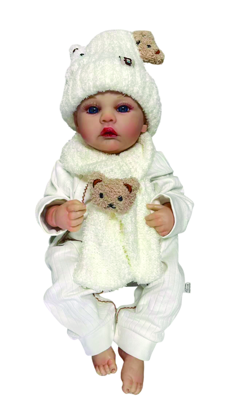 QM24017 BEBE RECIEN NACIDO, Bebé realista, piel con textura suave, se ríe cuando lo alzas ,llora al ponerlo boca abajo, emite tiernos sonidos de bebé, se duerme al acostarlo, ojos móviles, ropa premium, presentación en estuche visor.